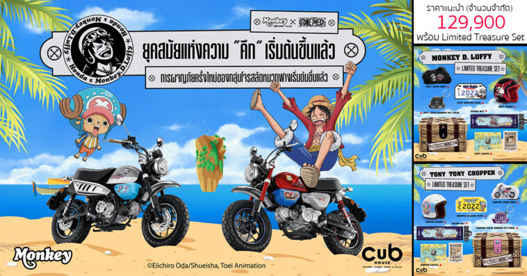 CUB House by Honda เดินหน้าส่งมอบความสนุกอย่างไรขีดจำกัด ด้วยโปรเจกต์ใหม่ล่าสุด จับมือค่าย Toei Animation เปิดตัว Monkey x One Piece Limited Edition ถ่ายทอดคาแรคเตอร์ความสนุกจาก “วันพีช” มังงะราชาโจรสลัดที่โด่งดังไปทั่วโลก ผลิตจำนวนจำกัดเพียง 300 คัน เท่านั้น!
